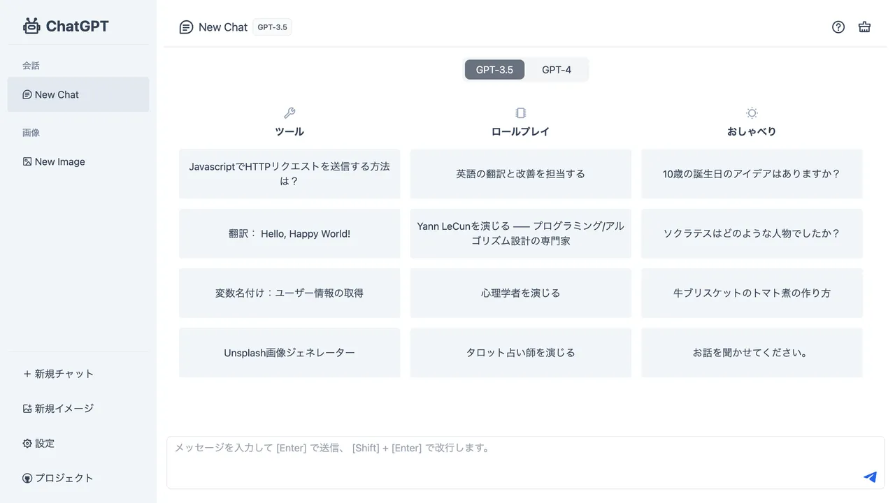 OpenAI の大規模言語モデルを活用する API を用いてチャット機能を提供する Web アプリケーション。