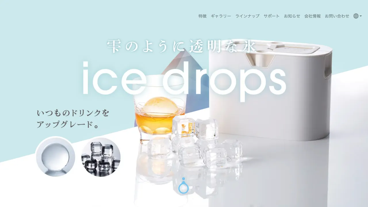 株式会社 PLANETAL DESIGN 様が開発した透明氷製氷機「ice drops」の製品Webサイトを制作しました。